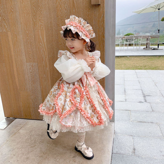 Vintage Lace Princess Dress for Girls – Elegant Spring Baby Outfit